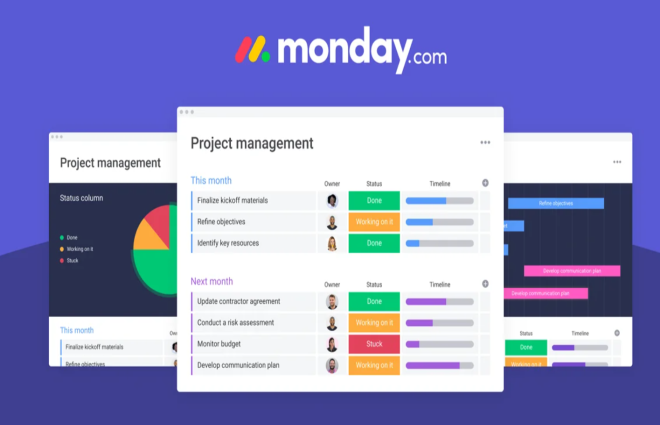 Monday es una herramienta que te permitirá llevar un seguimiento de cualquier tipo de proyecto, departamento, empresa. Te permitirá que otros puedan colaborar con permisos personalizados. Te permitirá automatizar muchas gestiones, podras: